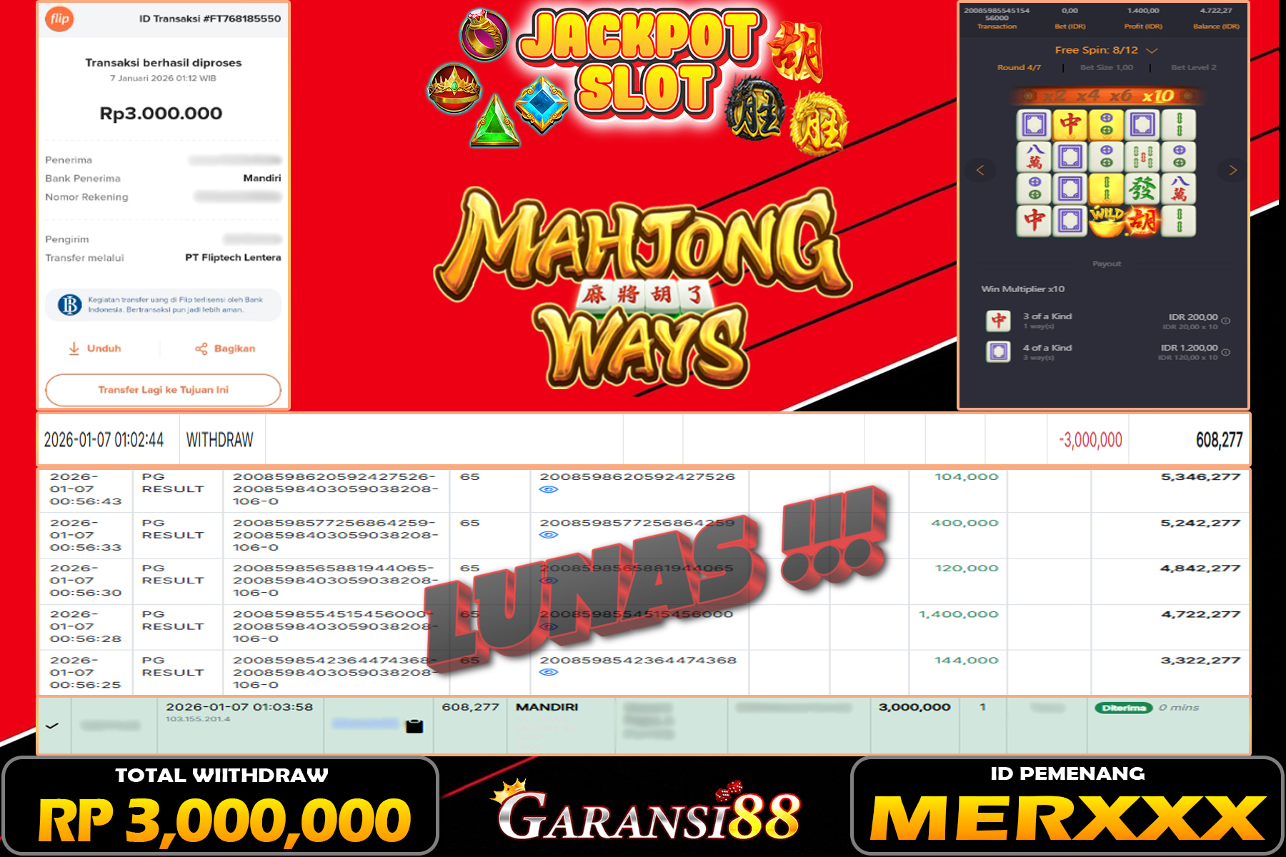 JACKPOT MAHJONG WAYS 07 JANUARI 2026