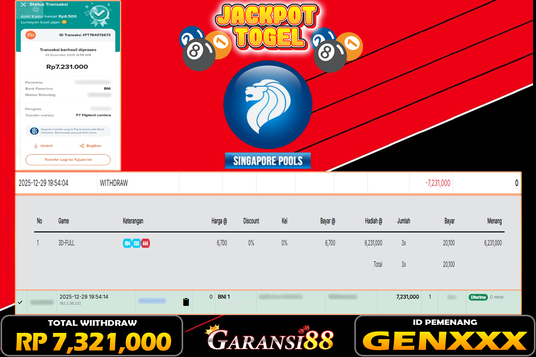 JACKPOT TOGEL SINGAPORE POOLS 29 DESEMBER 2025