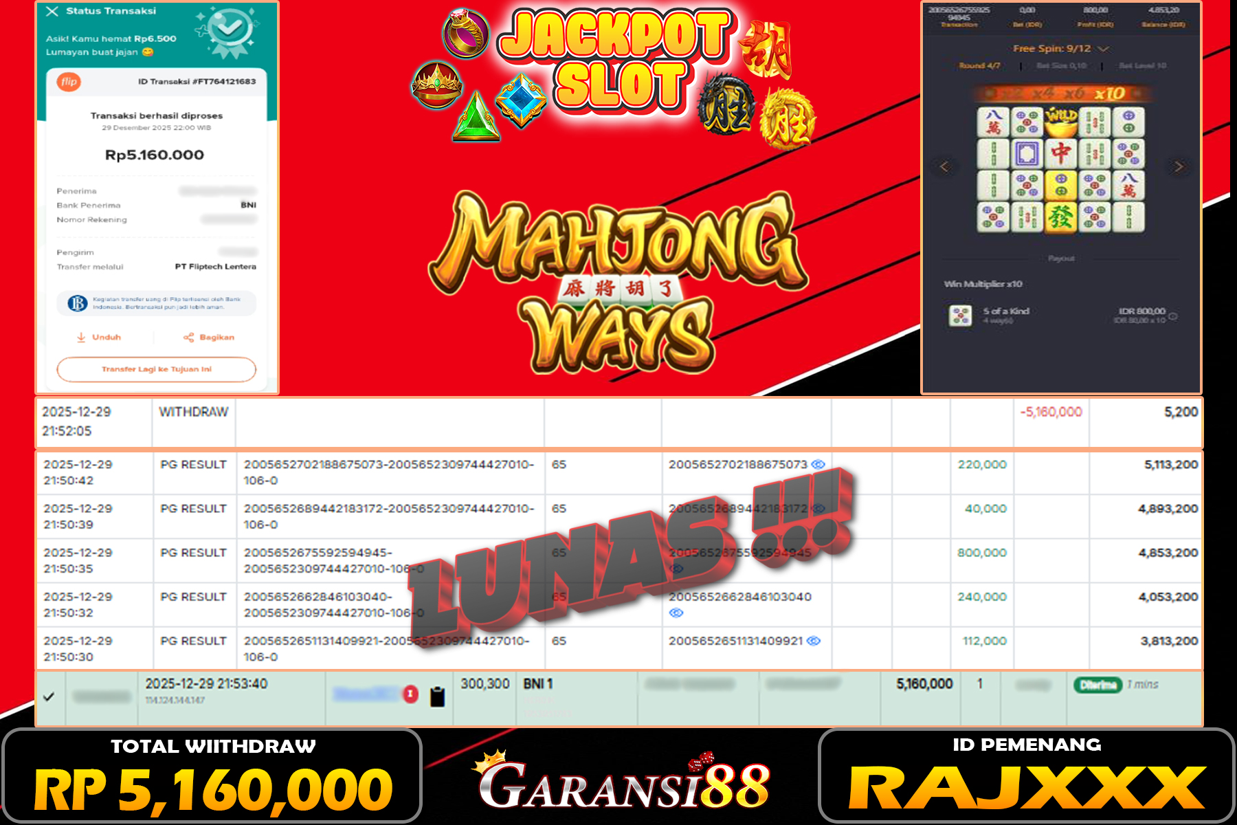 JACKPOT MAHJONG WINS 29 DESEMBER 2025
