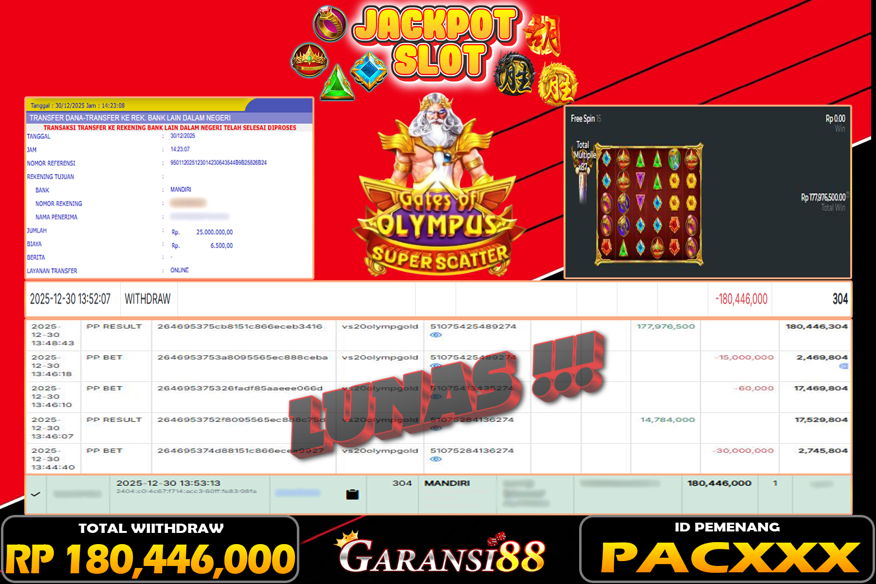 JACKPOT GATES OF OLYMPUS SUPER SCATTER 30 DESEMBER 2025