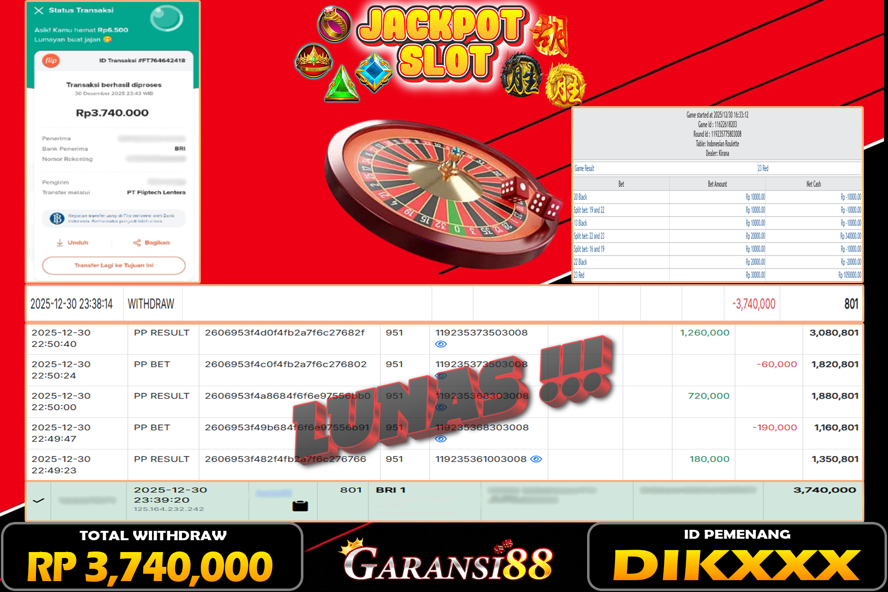 JACKPOT INDONESIAN ROULETTE 30 DESEMBER 2025