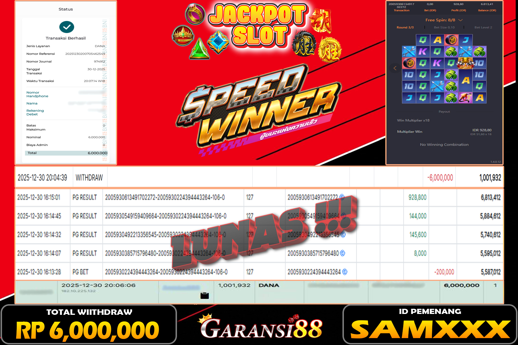 JACKPOT SPEED WINER 30 DESEMBER 2025