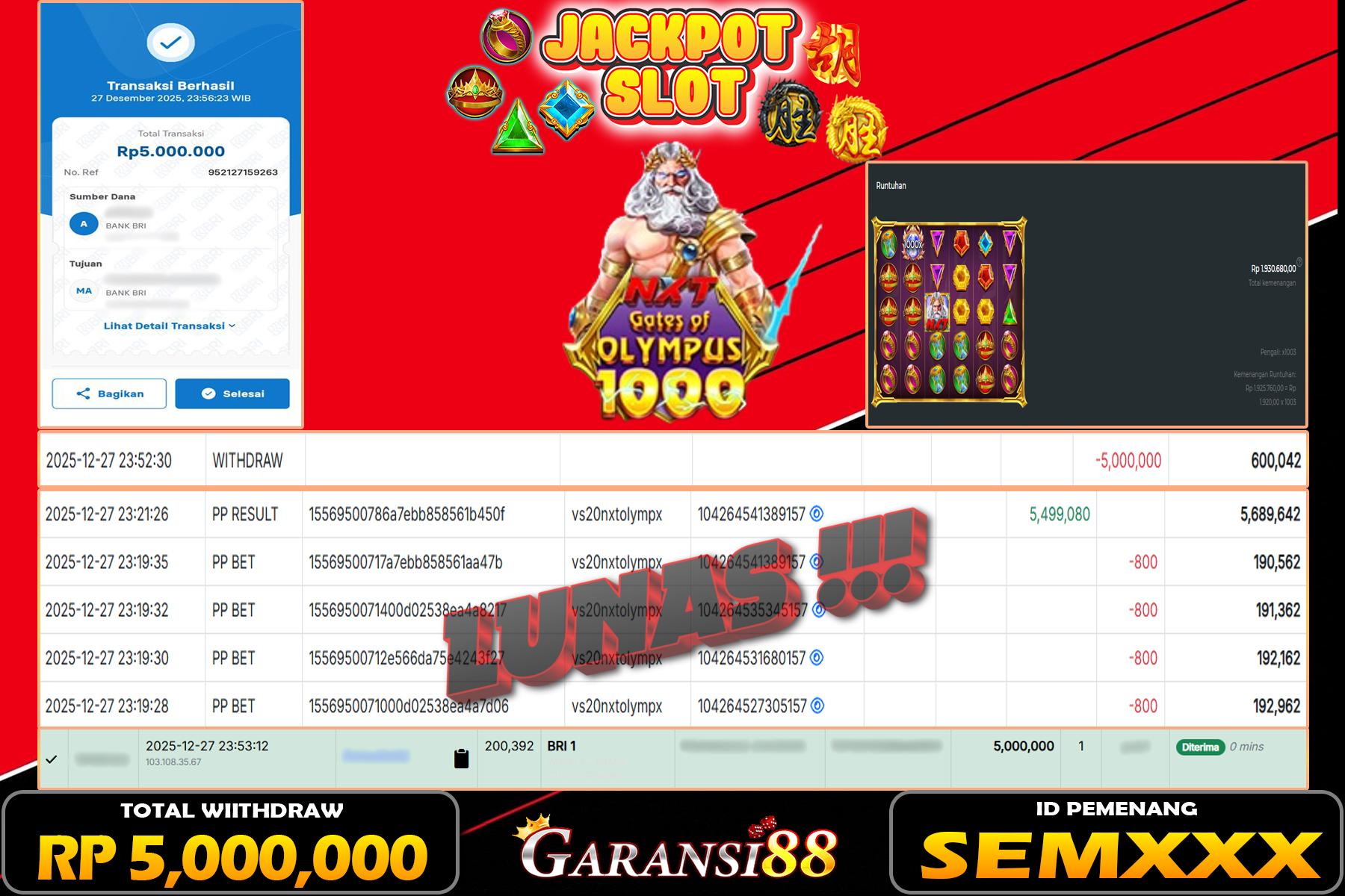 JACKPOT GATES OF OLYMPUS NXT 1000 27 DESEMBER 2025