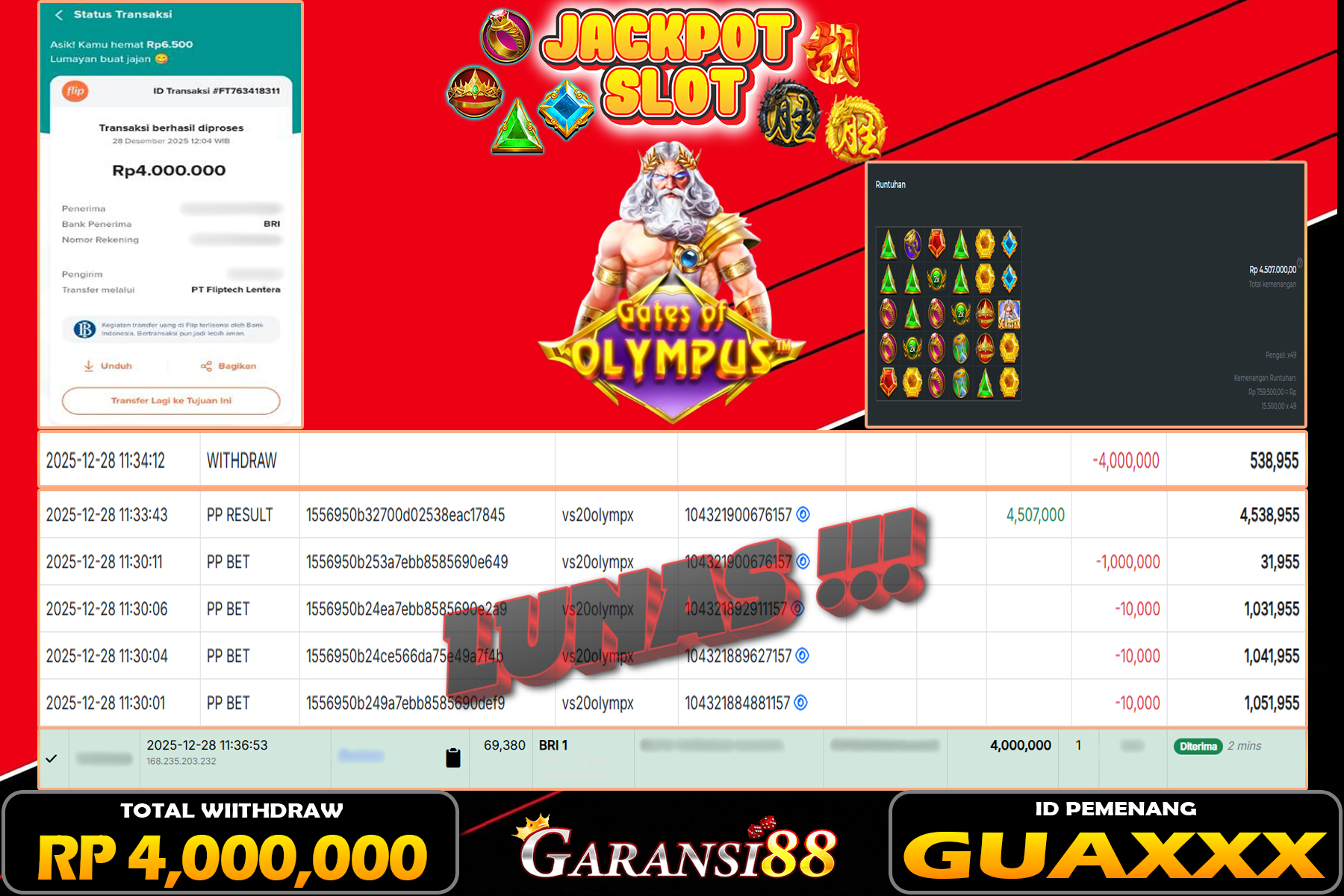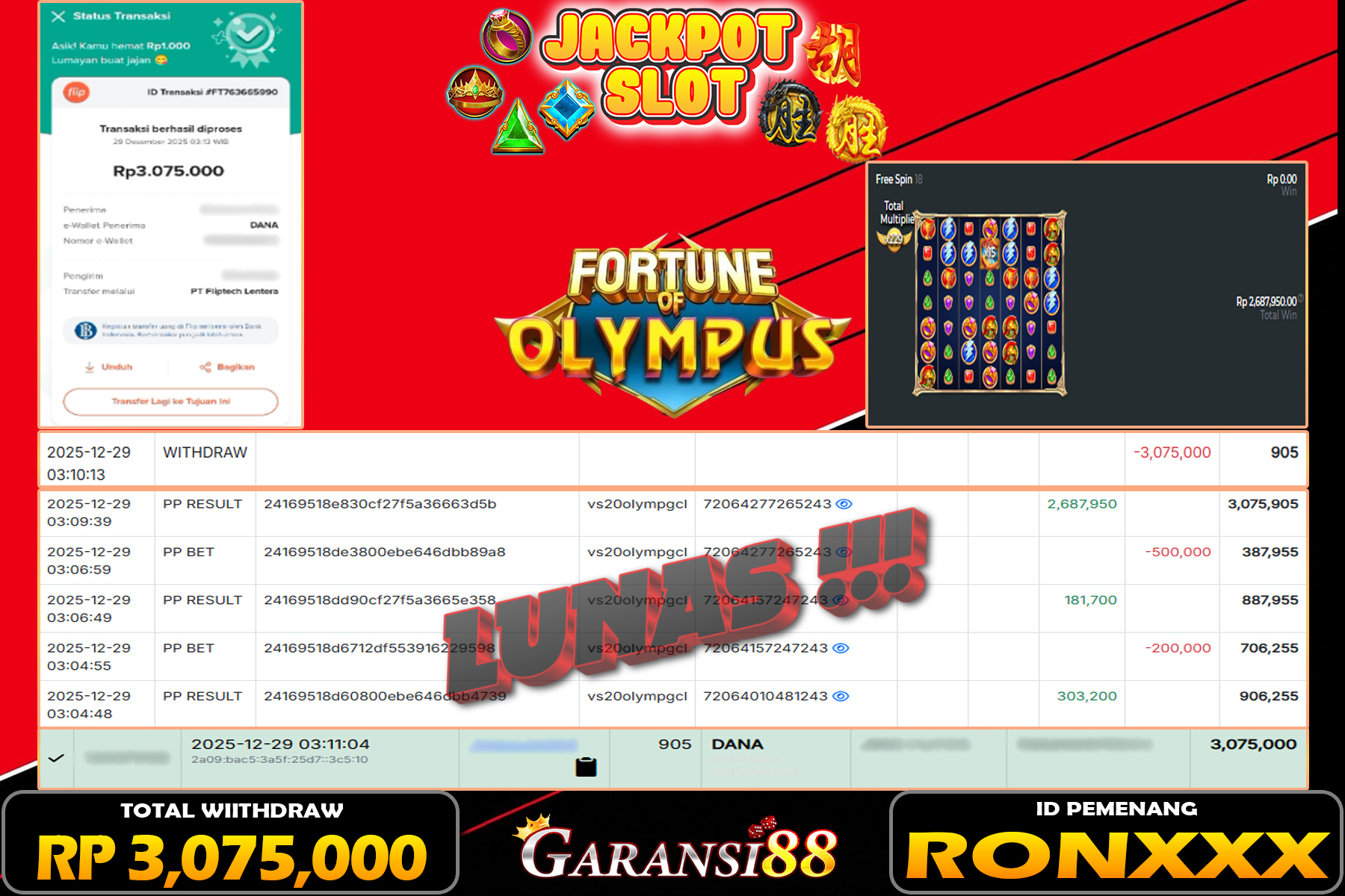JACKPOT FORTUNE OF OLYMPUS 29 DESEMBER 2025