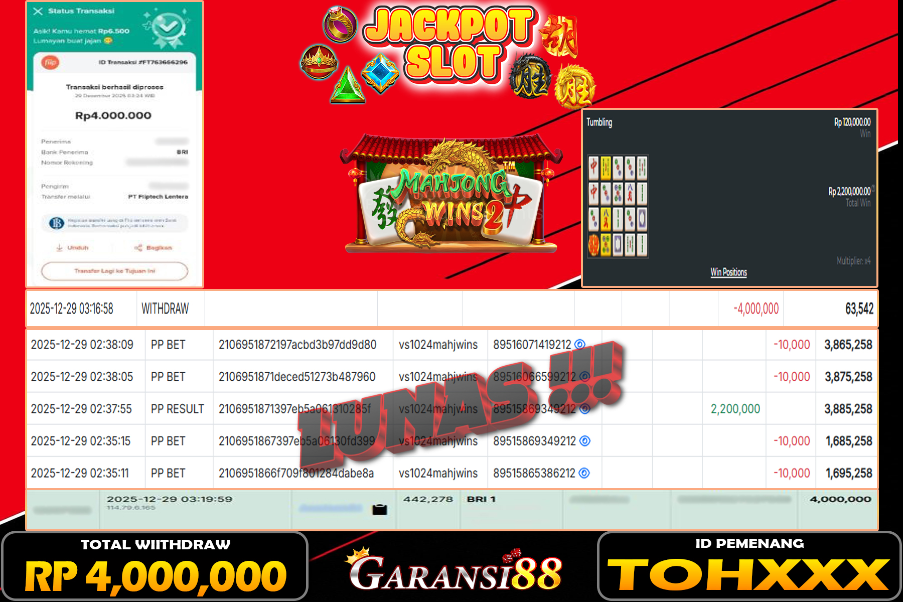 JACKPOT MAHJONG WINS 29 DESEMBER 2025