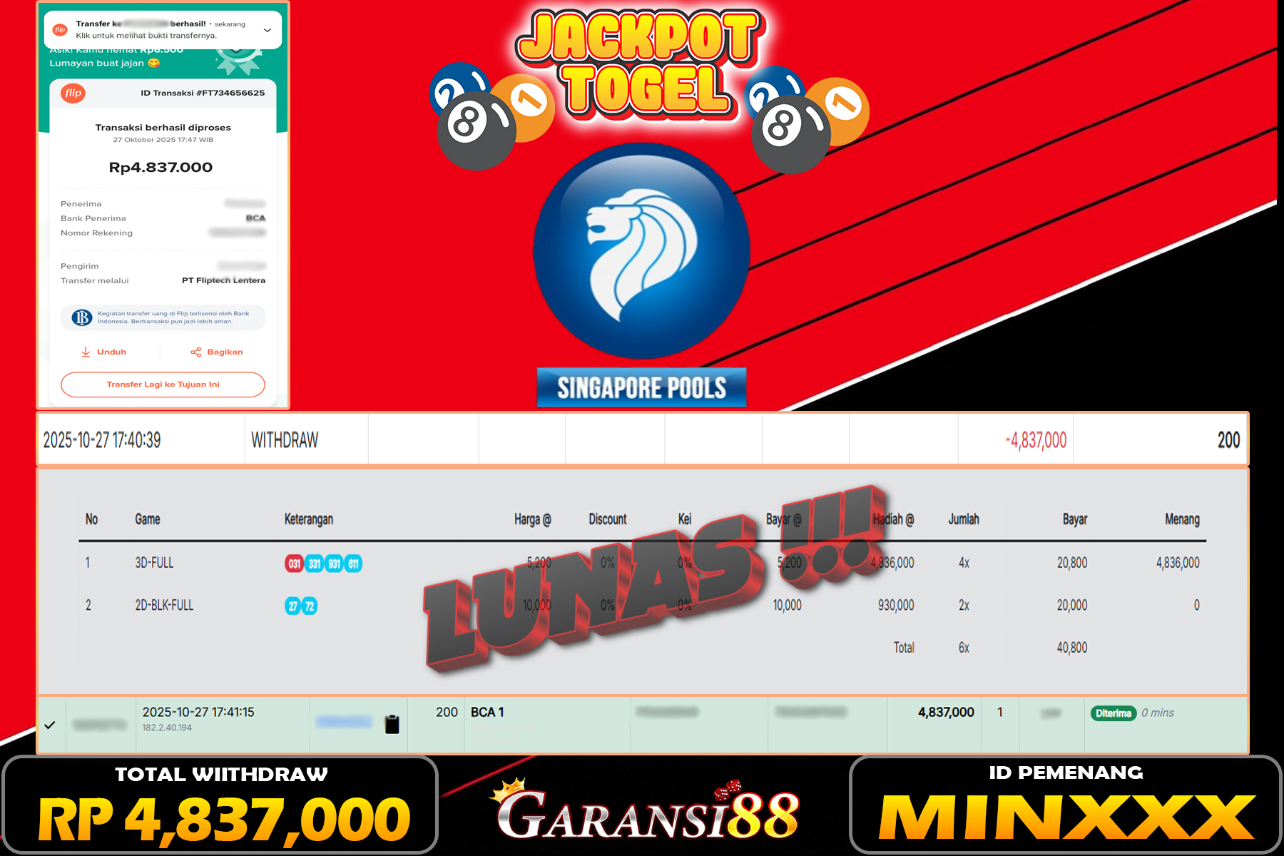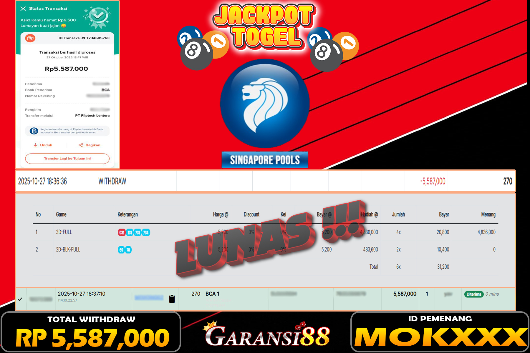JACKPOT TOGEL SINGAPORE POOLS 27 OKTOBER 2025