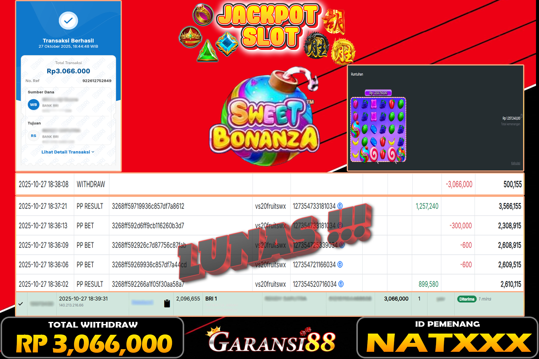 JACKPOT SWEET BONANZA 27 OKTOBER 2025