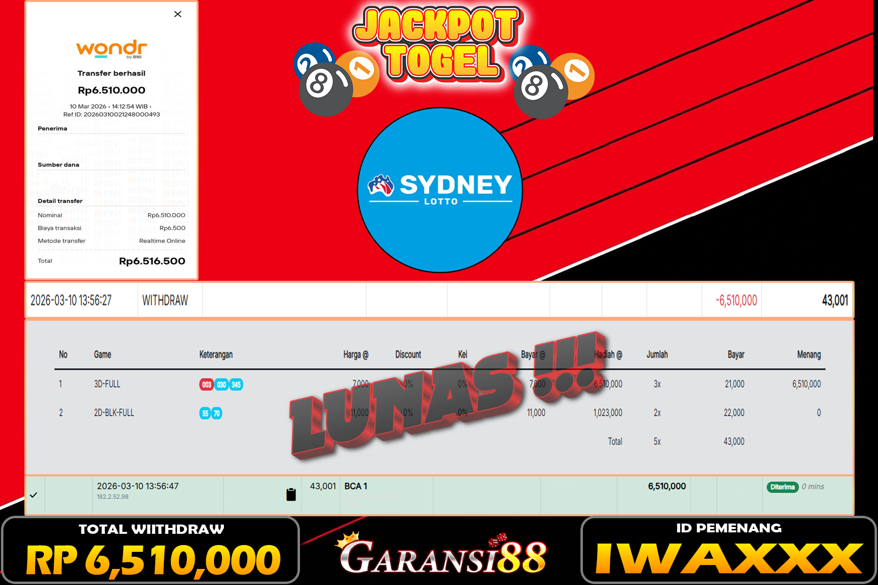 JACKPOT TOGEL SYDNEY LOTTO 10 MARET 2026