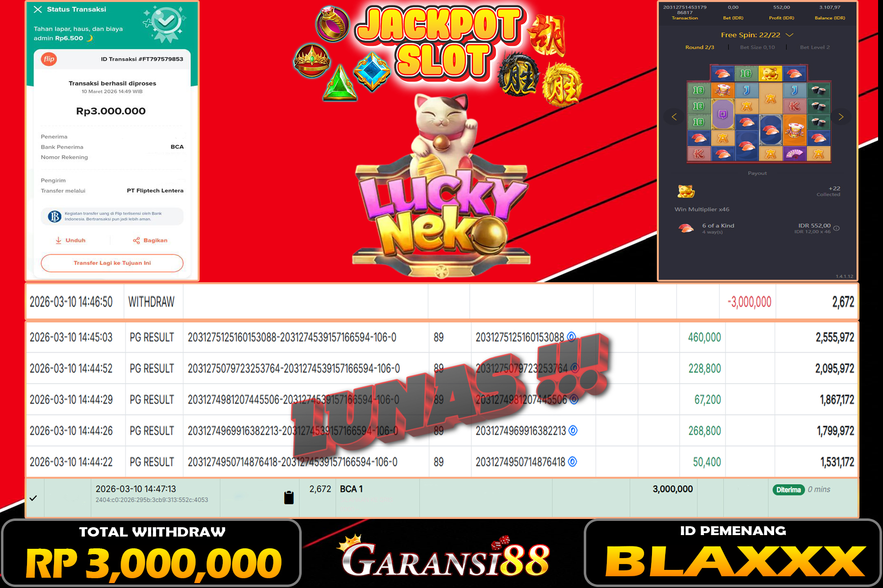 JACKPOT LUCKY NEKO 10 MARET 2026