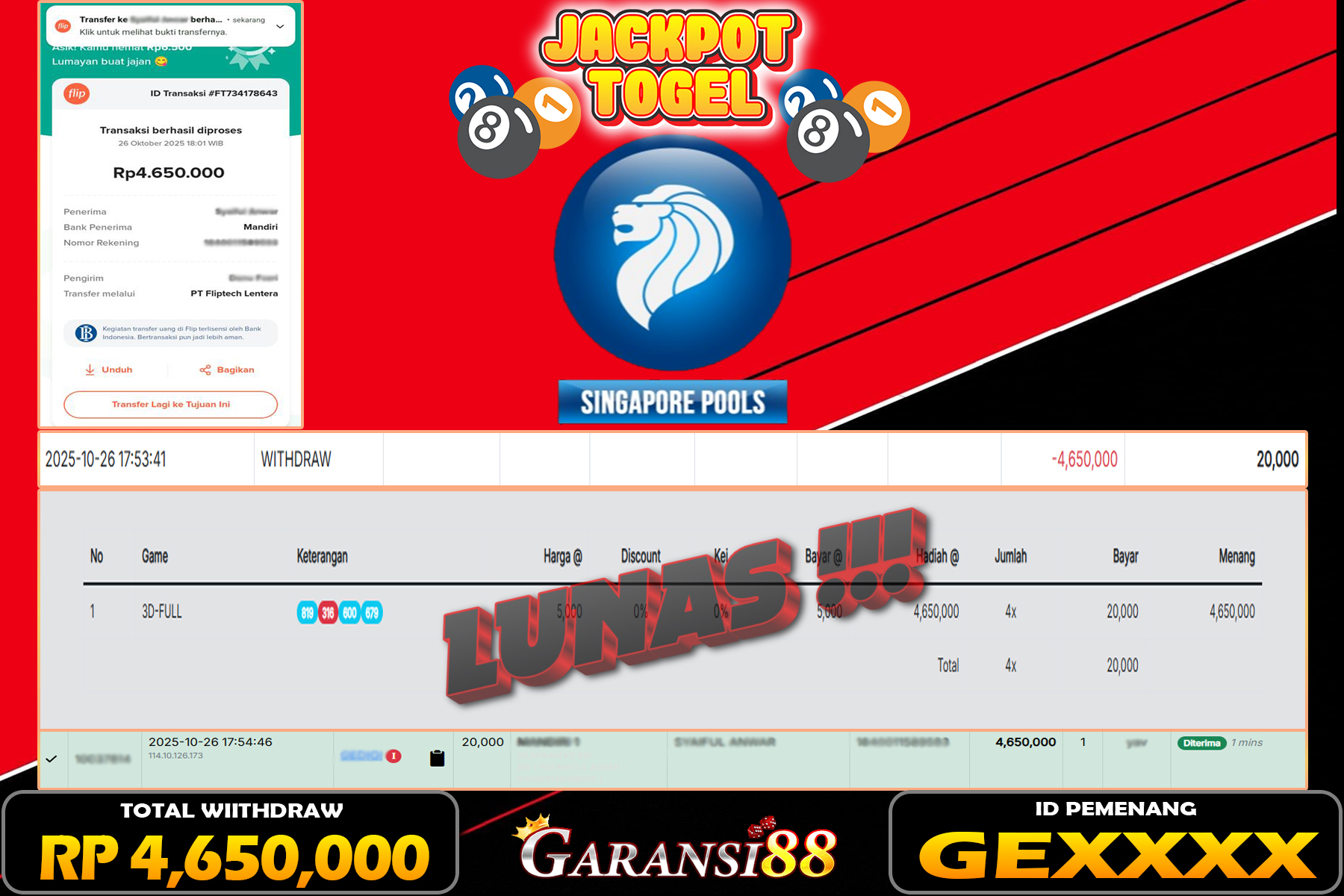 JACKPOT TOGEL SINGAPORE POOLS 26 OKTOBER 2025