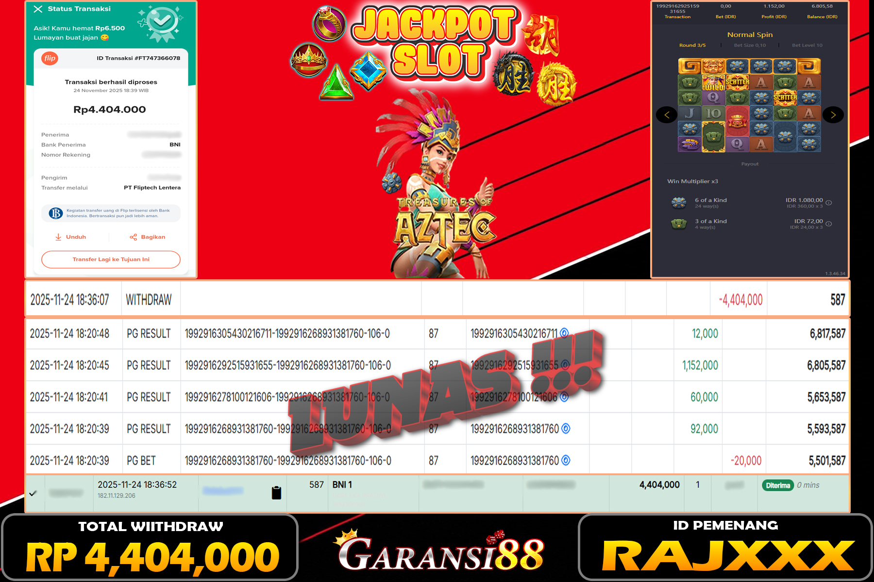 JACKPOT TREASURES OF AZTEC 24 NOVEMBER 2025