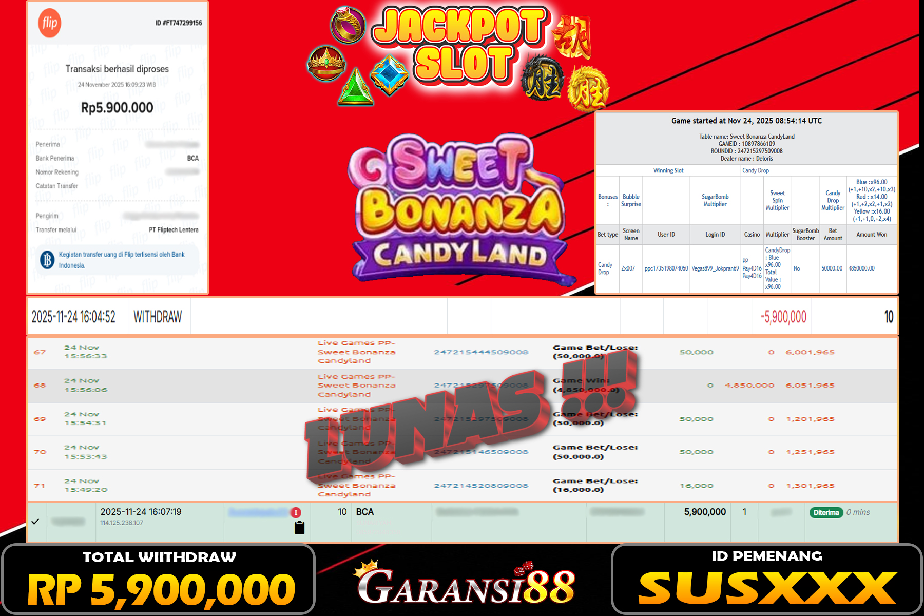 JACKPOT SWEET BONANZA CANDY LAND 24 NOVEMBER 2025