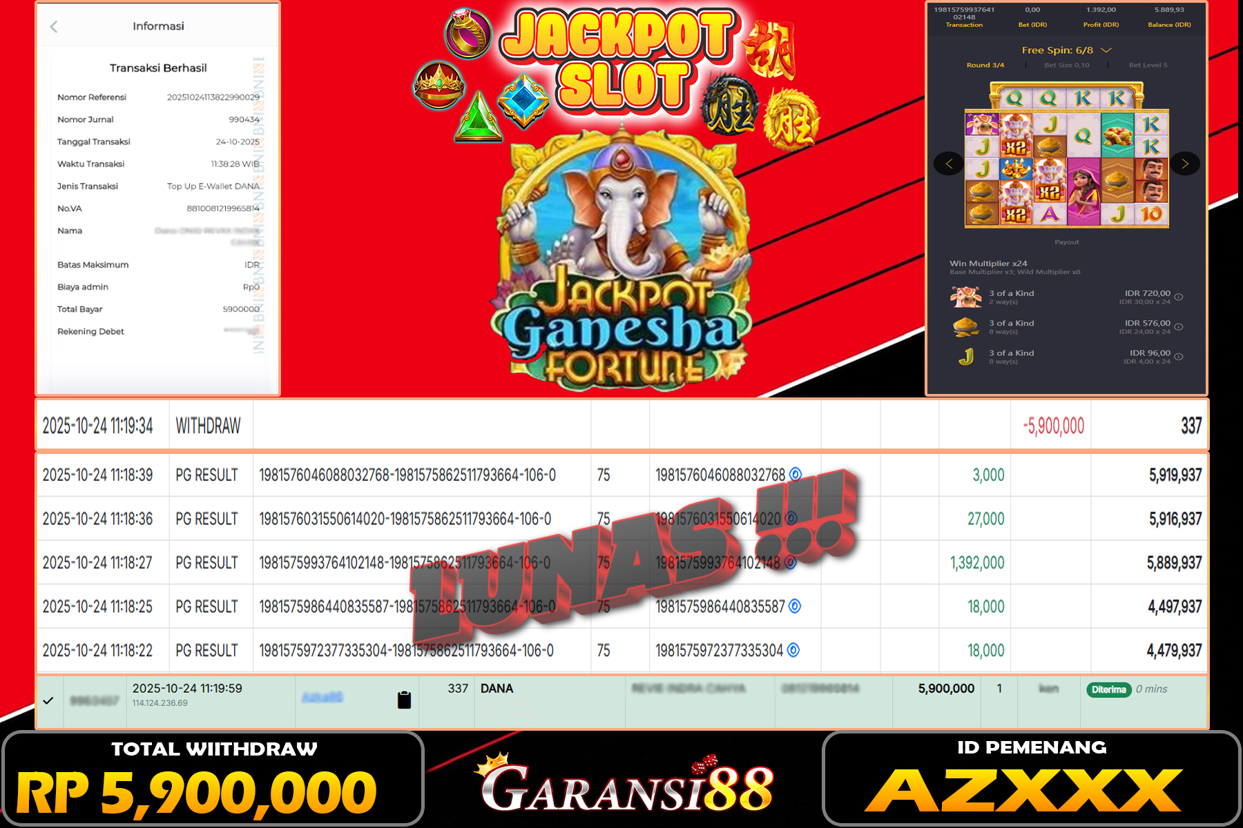 JACKPOT GANESHA FORTUNE 24 OKTOBER 2025