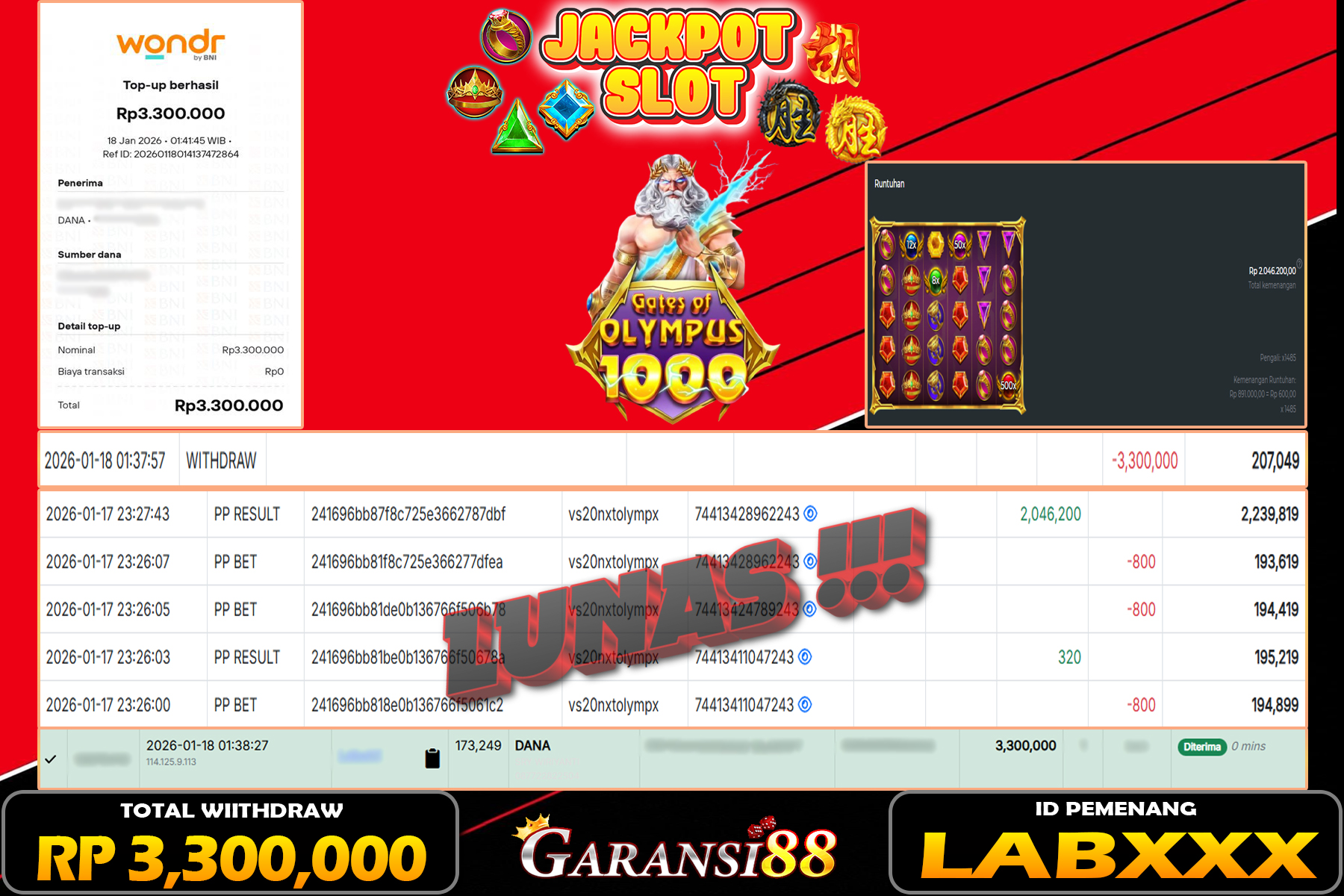 JACKPOT GATES OF OLYMPUS 1000 18 JANUARI 2026