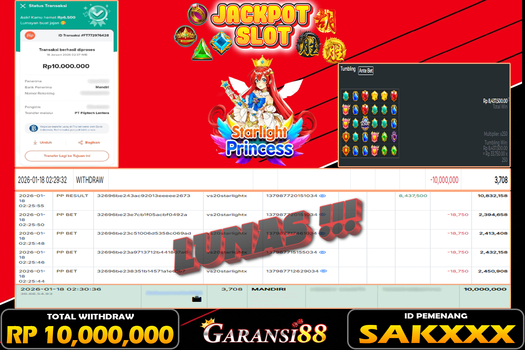 JACKPOT STARLIGHT PRINCESS 18 JANUARI 2026