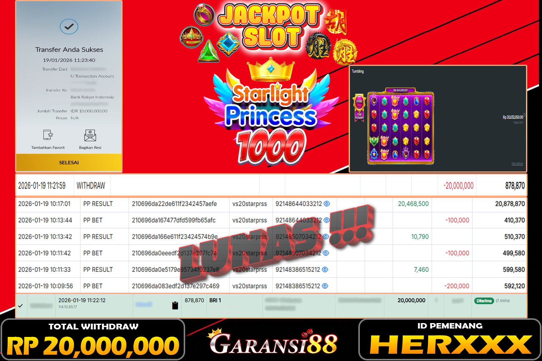 JACKPOT STARLIGHT PRINCESS 1000 19 JANUARI 2026