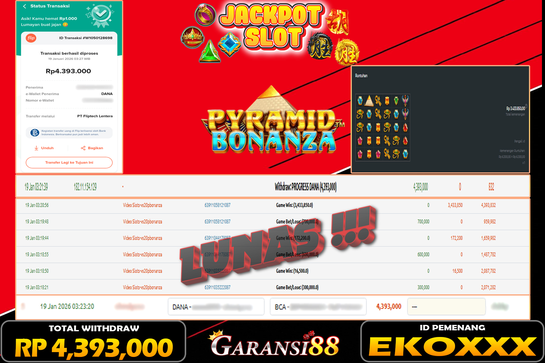 JACKPOT PYRAMID BONANZA 19 JANUARI 2026