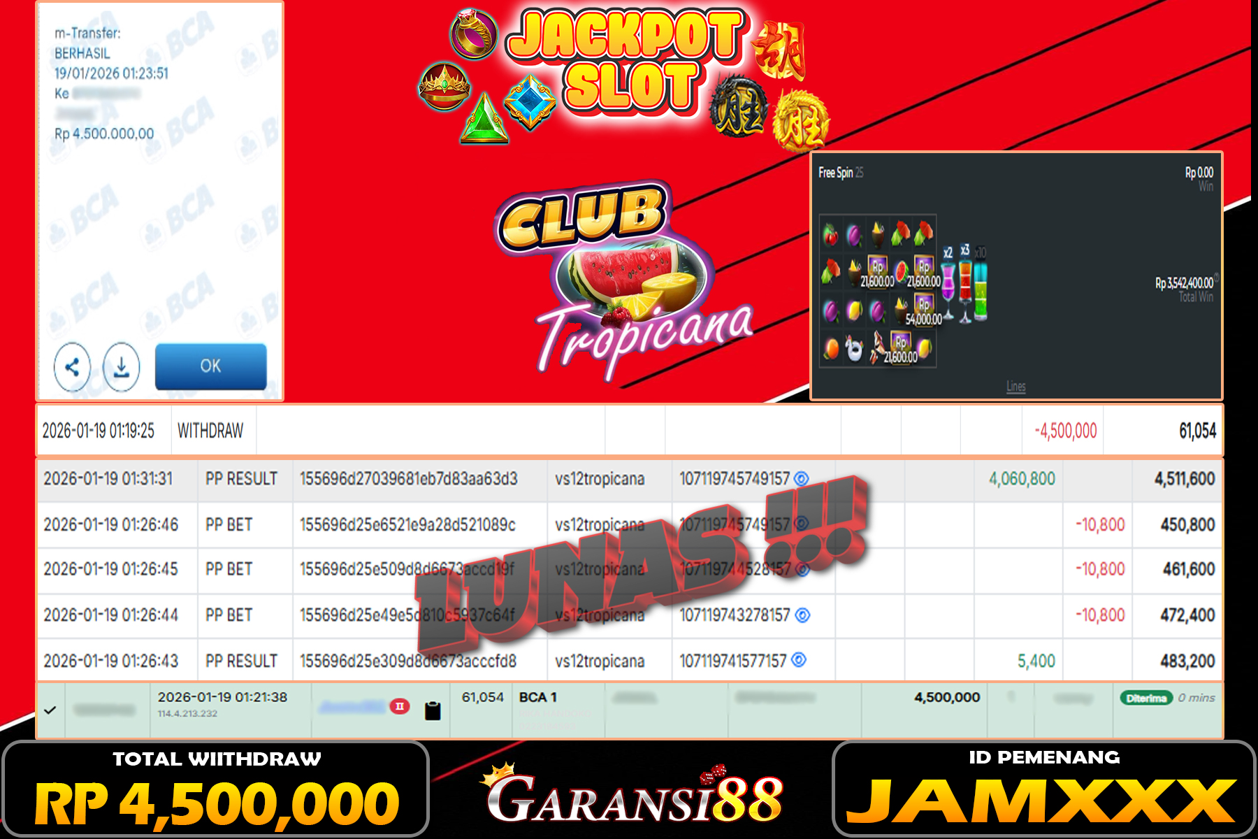 JACKPOT CLUB TROPICANA 19 JANUARI 2026