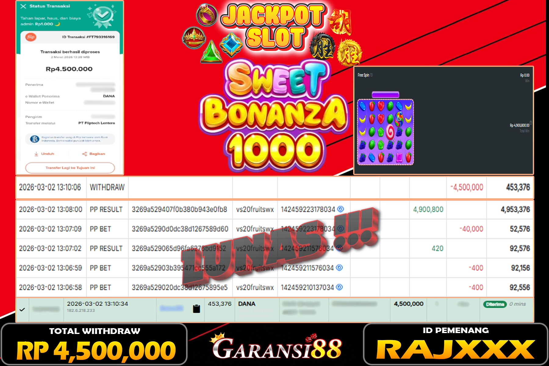 JACKPOT SWEET BONANZA 1000 02 MARET 2026