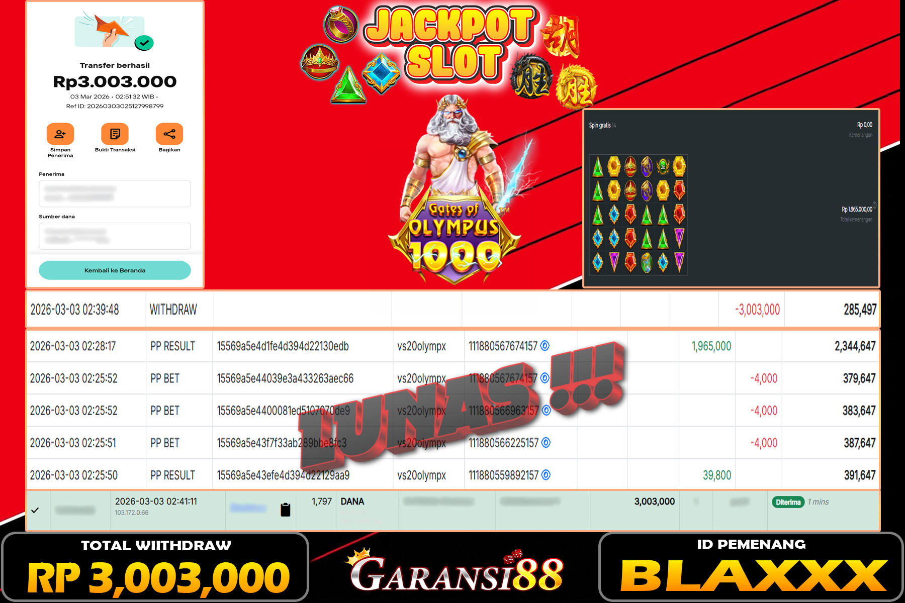 JACKPOT GATES OF OLYMPUS 1000 03 MARET 2026